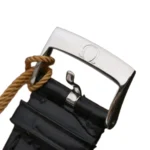 The black leather strap adds a traditional touch of sophistication and comfort. It includes adjustable links to accommodate all wrist sizes, and a folding clasp made of matching stainless steel for secure and stylish closure.
